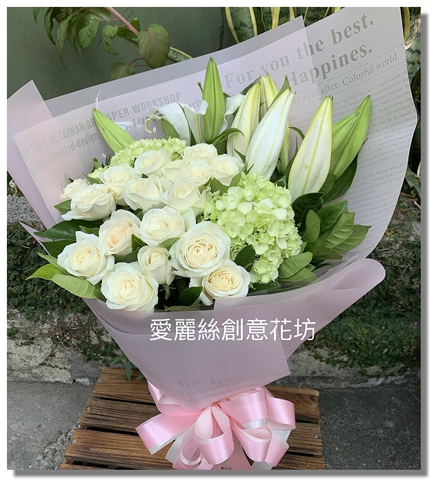 注意事項:因花卉常有季節性暫時短缺的問題,若圖片中花卉因季節性或不可抗力之因素短缺,本店將自動以當令相當之花材代替。