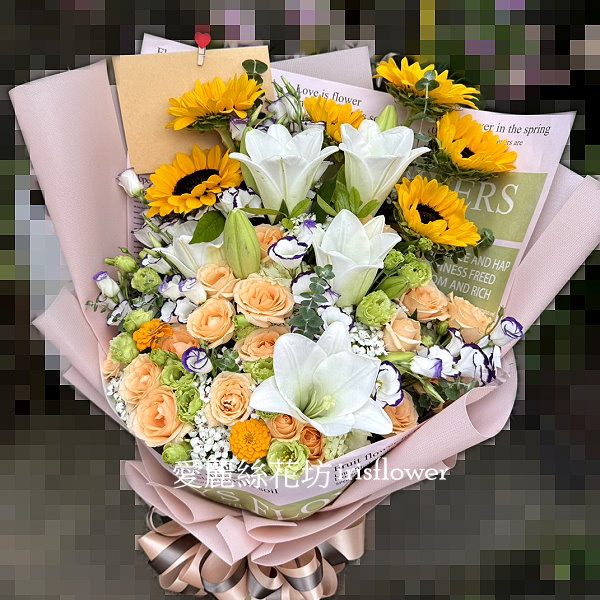 注意事項:因花卉常有季節性暫時短缺的問題,若圖片中花卉因季節性或不可抗力之因素短缺,本店將自動以當令相當之花材代替。